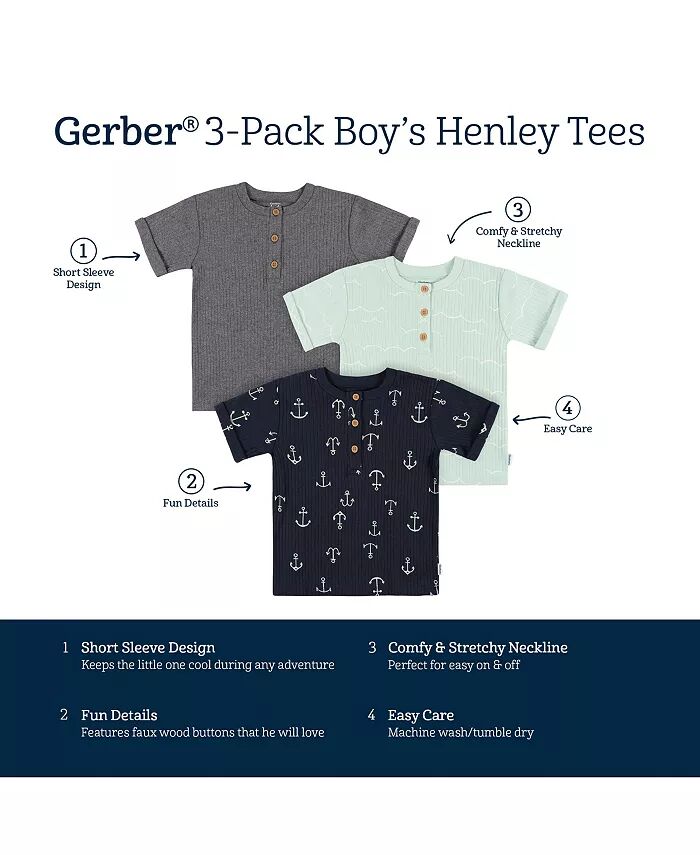 Футболки с коротким рукавом для малышей, 3 шт. в упаковке Gerber, черный