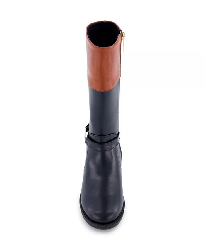 Высокие двухцветные сапоги для верховой езды с ремешком на щиколотке и логотипом. Молния сбоку для легкого надевания и снимания. Идеально подходит для повседневных мероприятий.