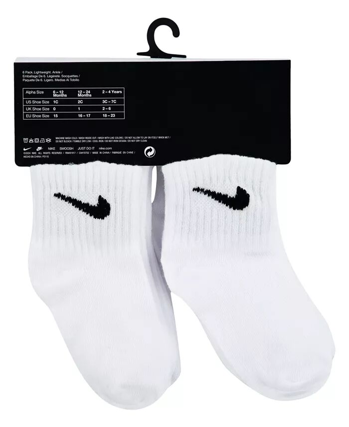 Носки Swoosh для малышей и мальчиков или девочек, упаковка из 6 шт Nike, белый