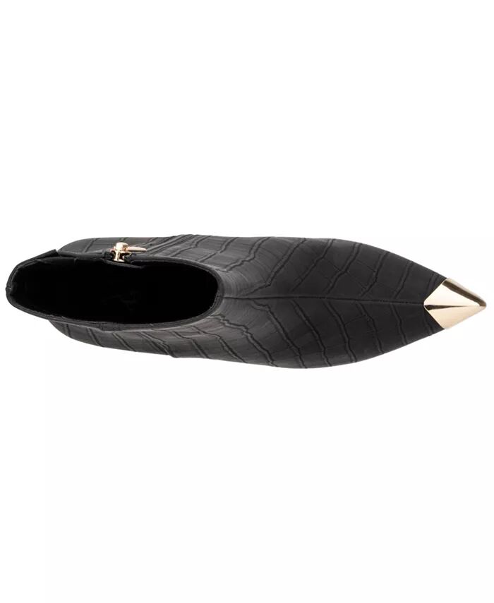 Давайте добавим гламура с ботильонами Kyla. Эта модель с острым носком отличается золотым акцентом, узорчатым верхом, боковой застежкой-молнией и блочным каблуком.
