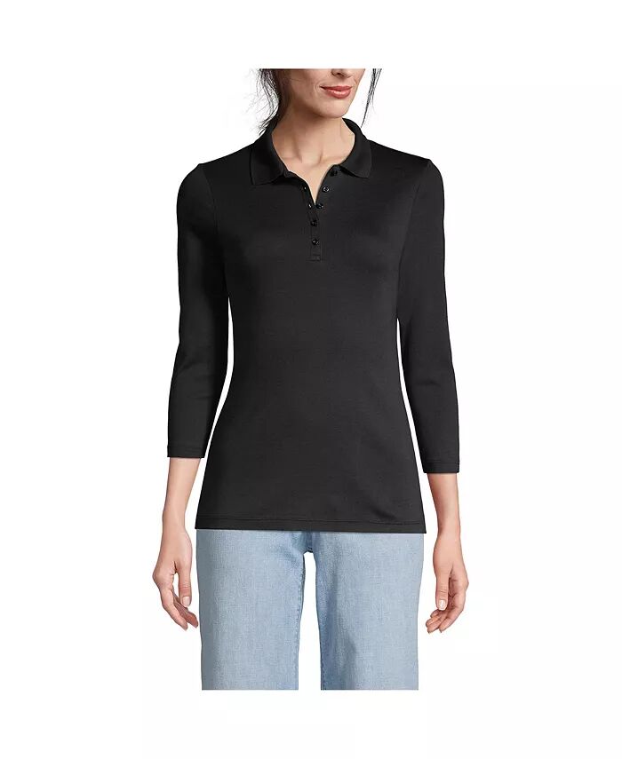 Женская рубашка-поло Supima Cotton с рукавом 3/4 Lands' End, черный