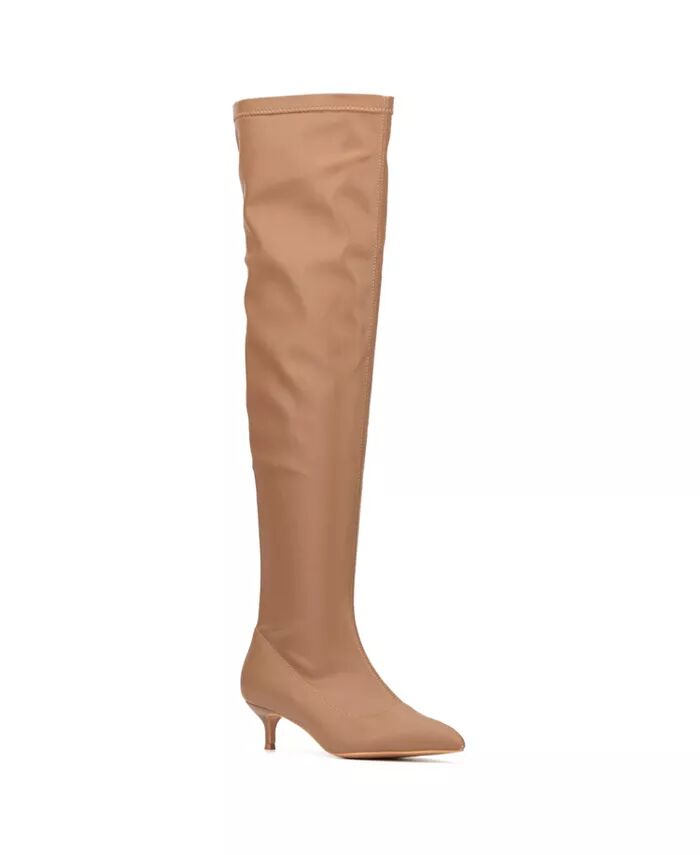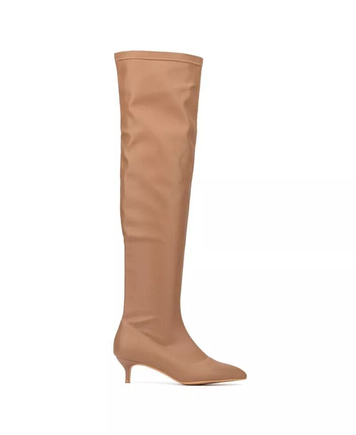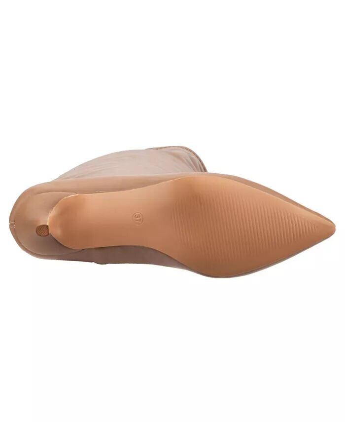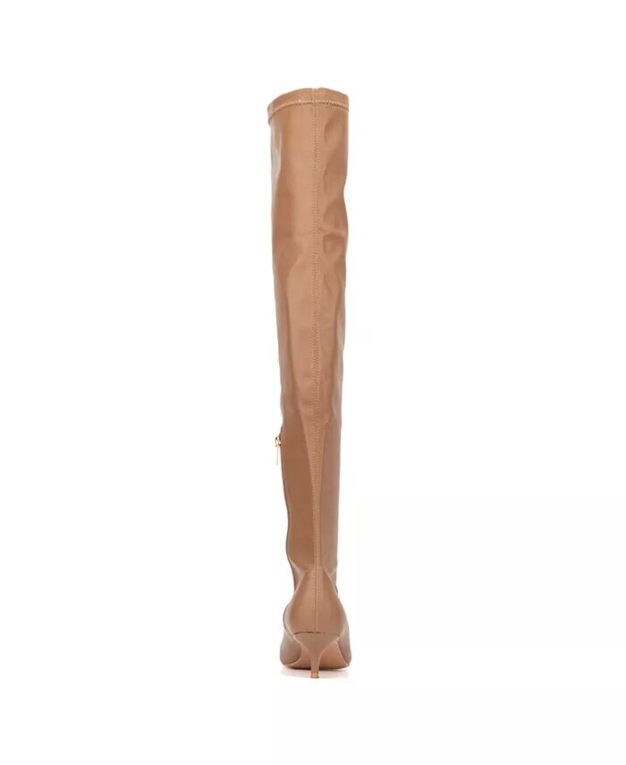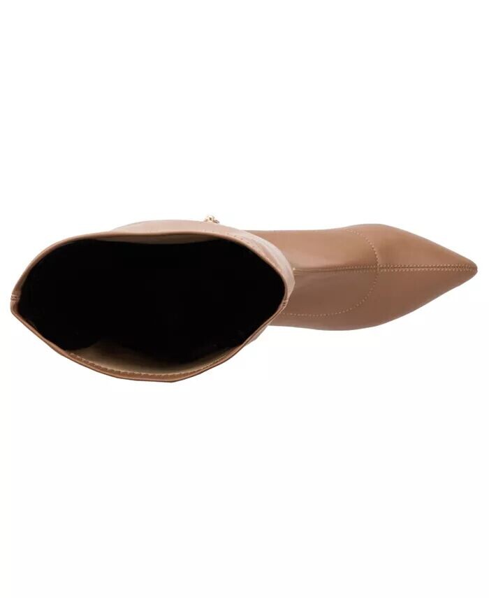 Сапоги Ilaina выше колена, изготовленные из эластичной искусственной кожи для безупречной посадки, имеют изящный каблук-рюмочку, острый носок и застежку-молнию сбоку.