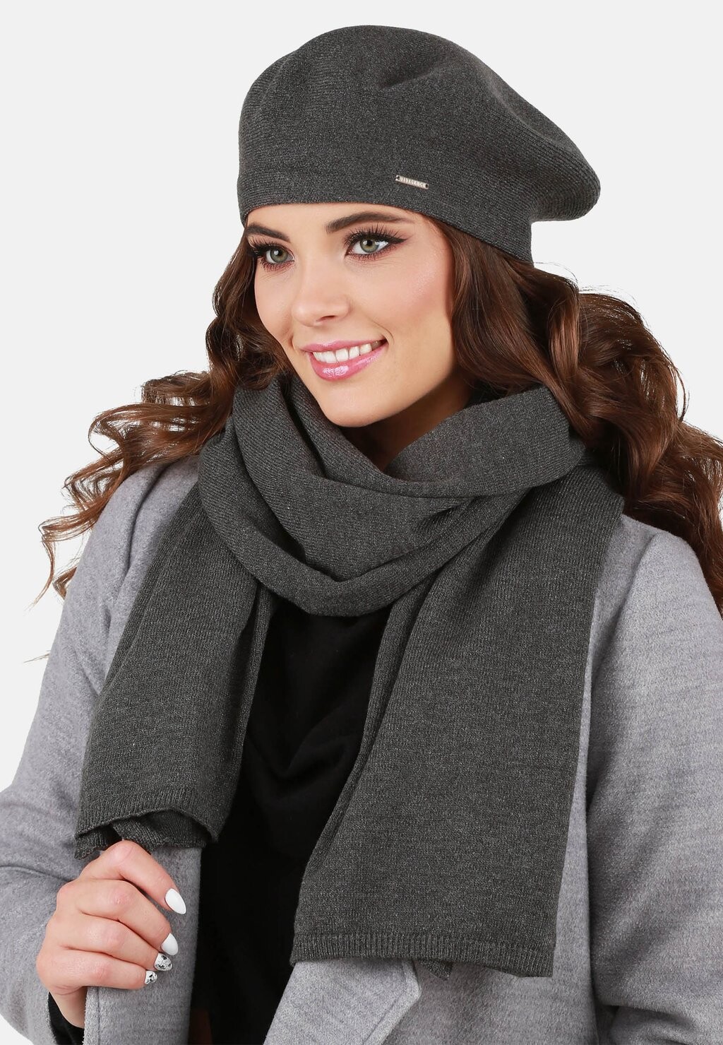 Шарф 7005 BERET AND SCARF SET Vivisence, темно-серый