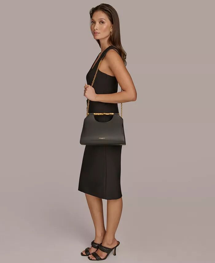 Этот клатч от Donna Karan структурированного силуэта выполнен из кожи и дополнен золотистой фурнитурой. Он идеально подойдет для вечернего выхода.