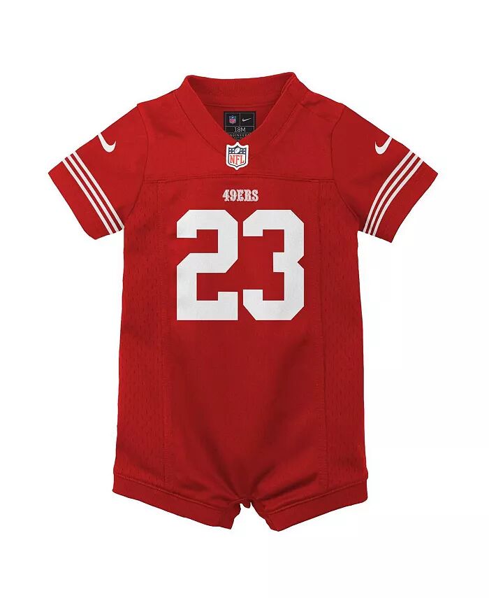 Оденьте своего малыша в главный символ фанатов San Francisco 49ers с этой майкой Christian McCaffrey Game Romper от Nike. Сетчатые боковые панели для улучшенной воздухопроницаемости гарантируют прохладу и комфорт во время игры за San Francisco 49ers. Трикотажный вырез горловины и проймы для ног обеспечивают плотную и удобную посадку, идеально подходящую для объятий в день игры или во время игр.