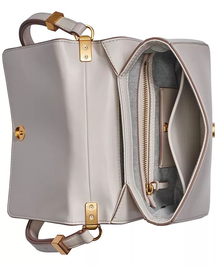 Эта сумка через плечо от Donna Karan, выполненная в структурированном силуэте, выполнена из кожи и украшена яркой золотистой фурнитурой и логотипом.