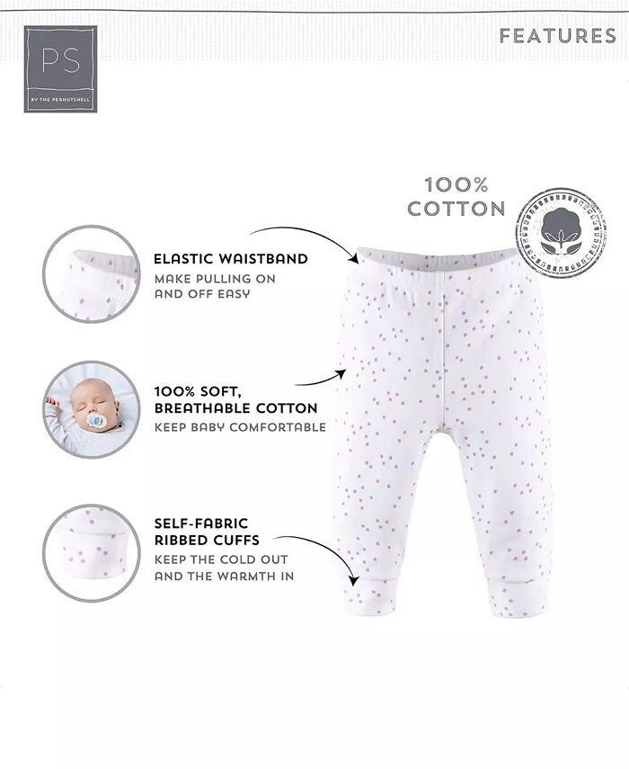 Комплект из 5 штанов Peanutshell для девочки или мальчика с забавными принтами в виде точек конфетти белого цвета на лавандовом и сиреневого цвета на белом, с основными однотонными цветами светло-серого, мятного и ярко-фиолетового цветов. Отличный строительный блок для гардероба любого мальчика или девочки, ваш малыш всегда будет выглядеть модно в этих дизайнах!