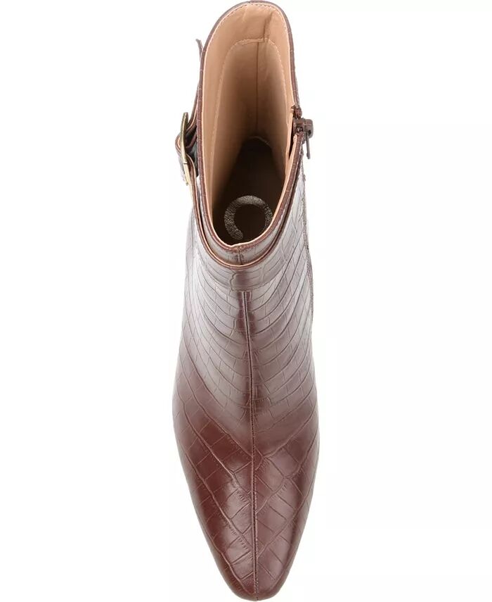 Стройные ботильоны, которые обязательно привлекут внимание, коллекция Elanie by Journee. Этот силуэт из искусственной кожи с крокодиловой текстурой дополнен квадратным носком и пряжкой на щиколотке для создания изысканного образа.