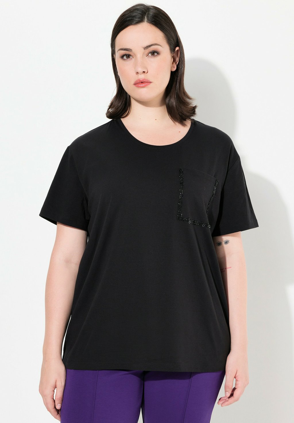 Футболка с принтом BEADED POCKET SHORT SLEEVE Ulla Popken, черный