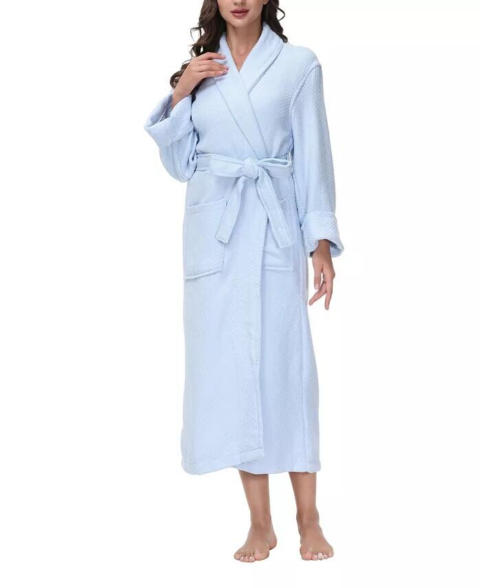 Женский халат с узором «ромб-вафель» INK+IVY, синий