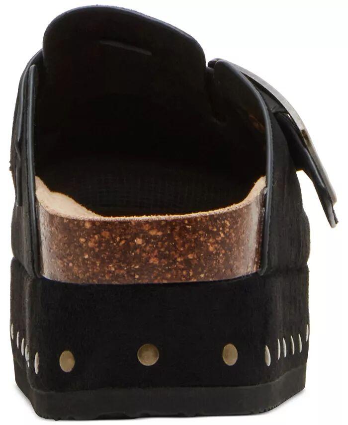 Заклепочные платформы и ремешки с пряжками придают броский стиль мюлям Luna от Madden Girl, напоминающим сабо.