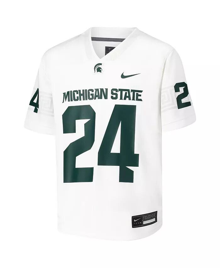 Подготовьте своего юного болельщика к поддержке команды Michigan State Spartans с этой футбольной майкой 24 Untouchable от Nike. Эта реплика майки изготовлена из дышащего полиэстера и оснащена технологией Dri-FIT от Nike, чтобы ваш юный болельщик чувствовал себя прохладно и комфортно. Она разработана со свободным кроем для комфорта в течение всего дня, представляя команду Spartans, независимо от того, находятся ли они на стадионе или смотрят матч дома.