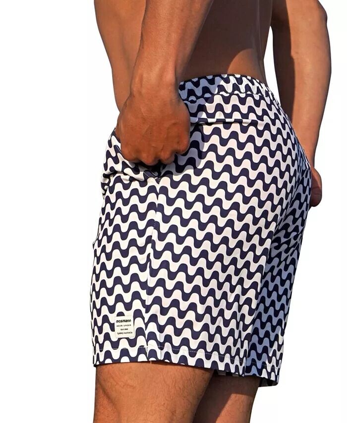 Наши шорты для плавания имеют эластичный пояс и завязки для шнурков, боковые карманы с самоотводом и карманы на молнии сзади, облегающие линии на бедрах для приталенного вида. Ткань, растягивающаяся в 4 направлениях, которая движется вместе с вами. Фирменный бегунок молнии Mosmann сзади для солнцезащитных очков. Эластичный пояс