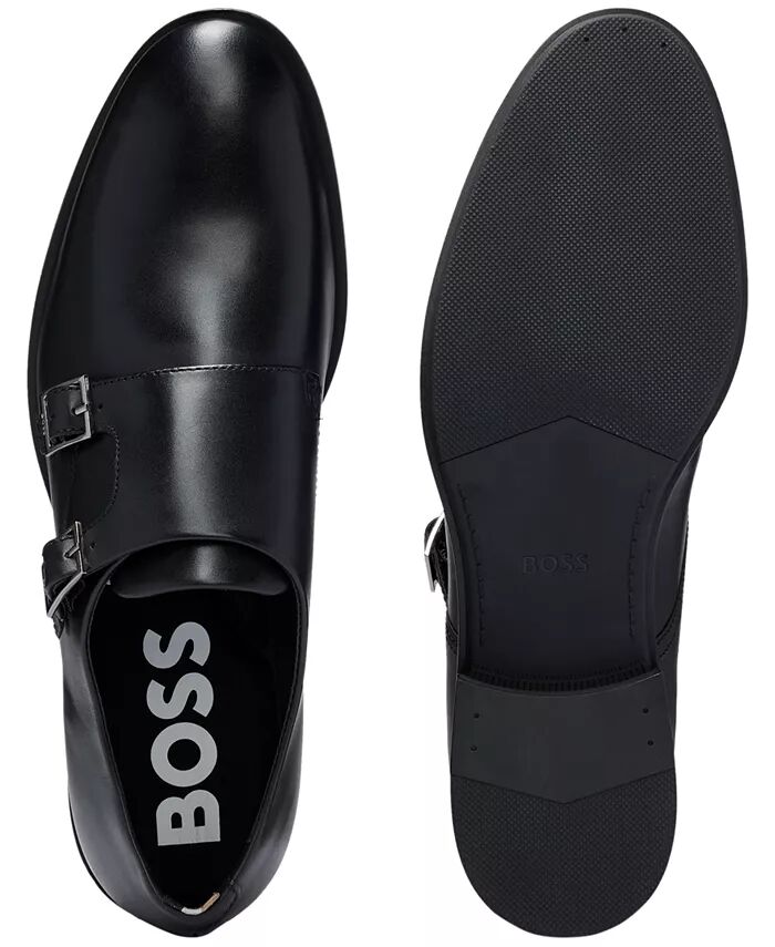 Туфли Colby от BOSS в итальянском стиле выполнены из гладкой кожи в стиле «двойной монк», дополненной двойной строчкой по бокам.