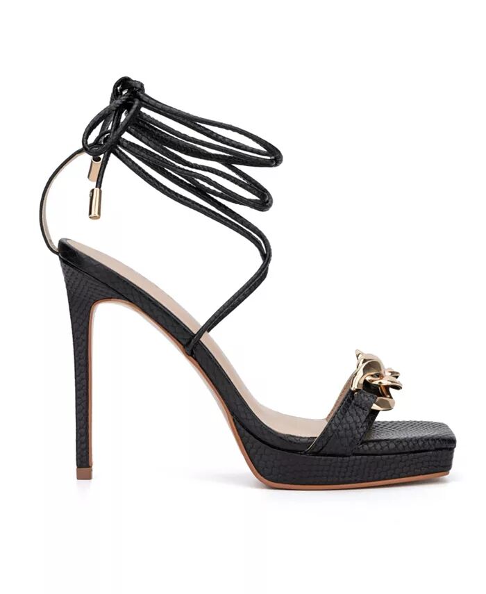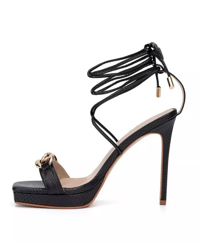 Это пятничный вечер, девчонки! Вступайте на вечеринку, чувствуя себя дивой, которой вы и являетесь. Каблуки-шпильки никогда не выглядели лучше, обхватывающие ремешки на сандалиях Cassava создают драматический эффект, а золотая деталь спереди подчеркивает их элегантность.