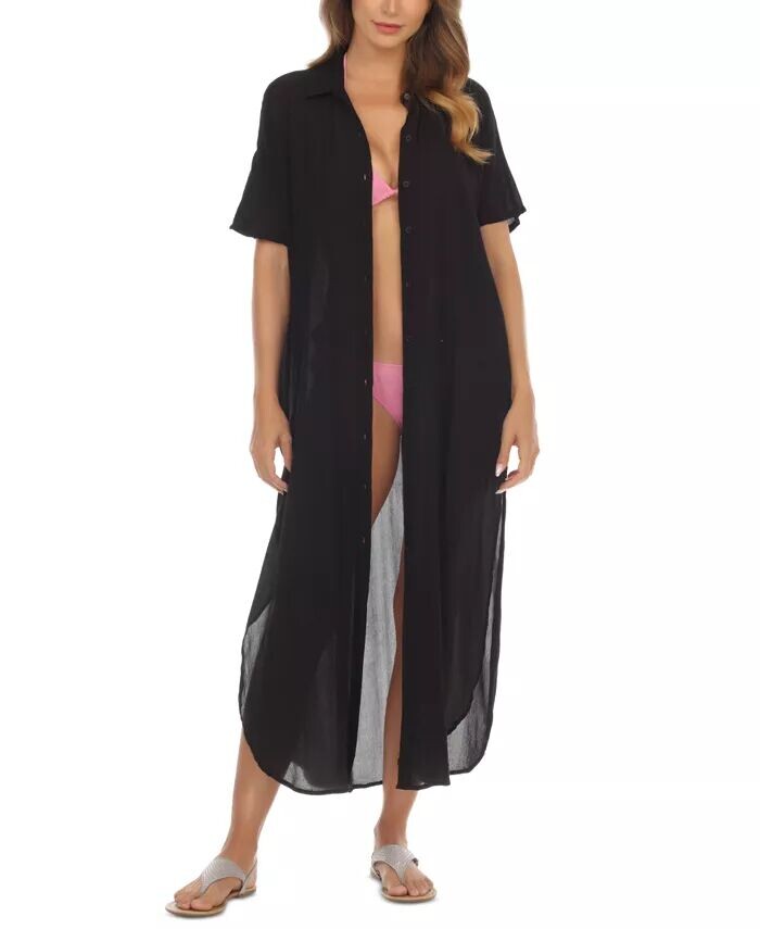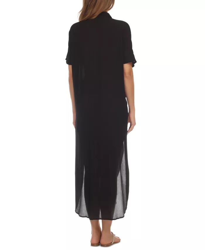 Равия привнесет изысканность и стиль в пляжные образы с помощью этой накидки с воротником, застегивающейся на пуговицы спереди и струящейся длины макси.