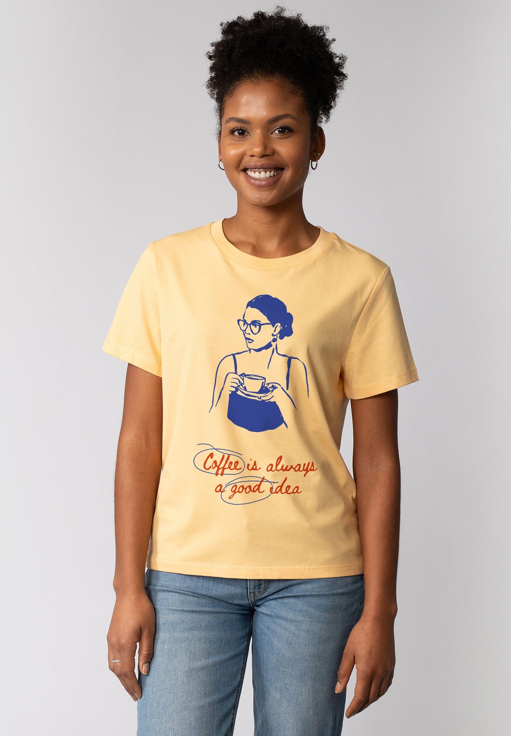 Футболка с принтом COFFEE IS A GOOD IDEA watapparel, желтый