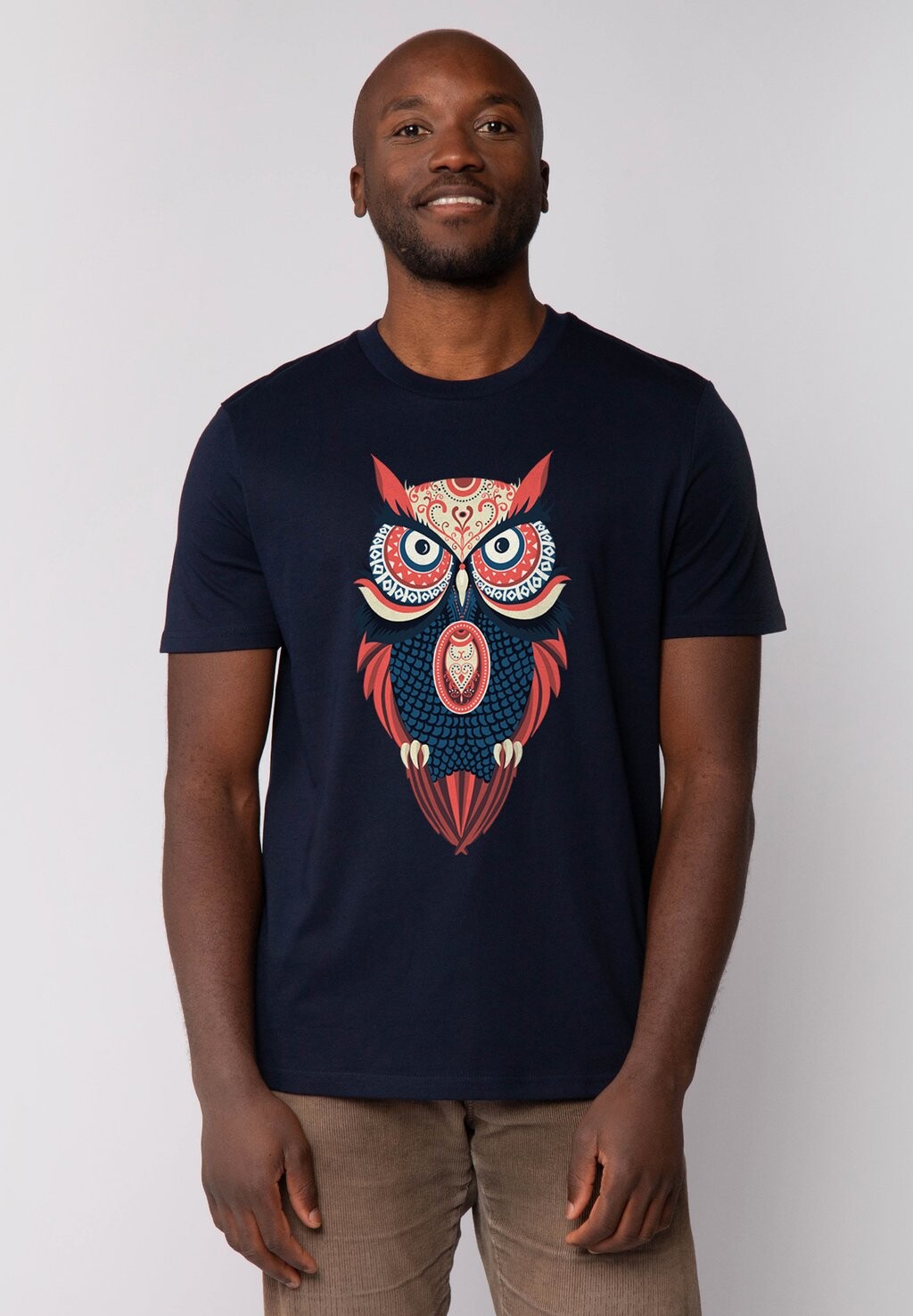 Футболка с принтом COLORFUL OWL watapparel, темно-синий