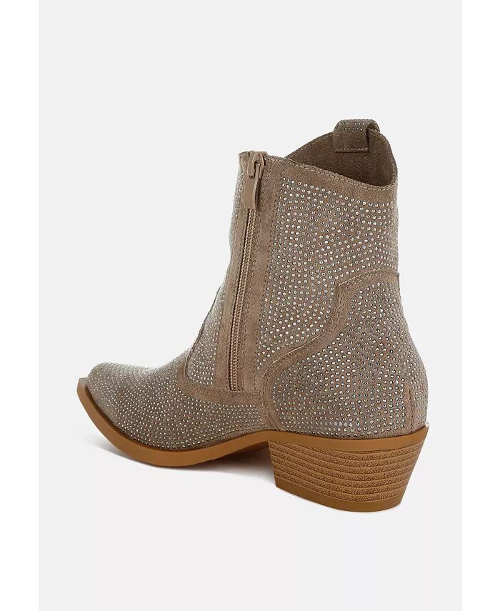 Ковбойские ботильоны - это ослепительное зрелище с украшениями из стразов, которые мгновенно настраивают вас на танцы всю ночь. Сочетайте их с великолепным мини-платьем для шикарного и гламурного образа. Ботильоны удобны благодаря низкому блочному каблуку и удобной мягкой стельке.