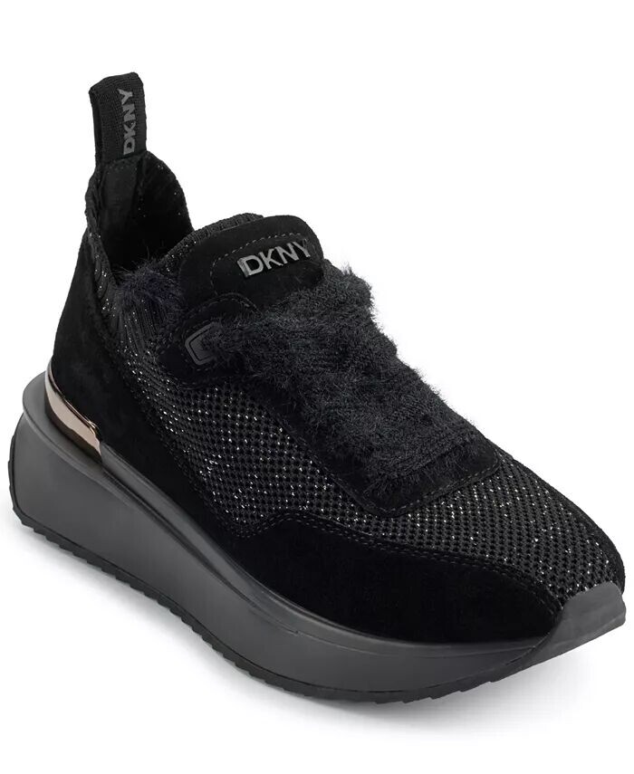 Ультракомфортные акценты женской обуви DKNY усиливают привлекательность этих кроссовок на танкетке в стиле «микс медиа», которые выведут ваш уличный стиль на новый уровень.