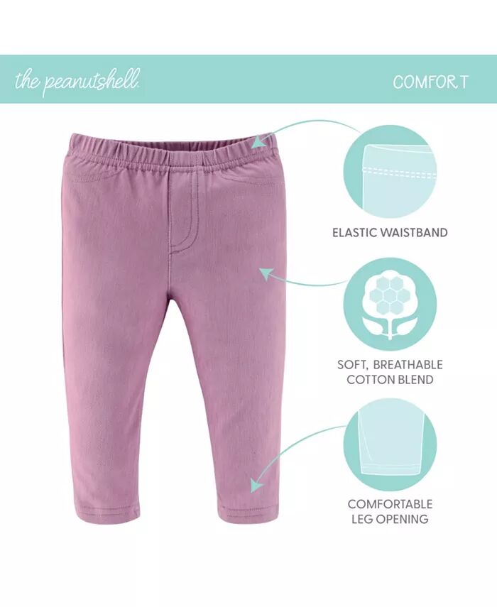 Комплект из 4 шт. Джеггинсов для девочек Peanutshell Baby Girl Jeggings представлен в 4 женственных цветах: нежно-розовый, лиловый, белый и серый. Эти джеггинсы изготовлены из ультрамягкой и прочной ткани с эластичным поясом, который обеспечивает плотную и удобную посадку.
