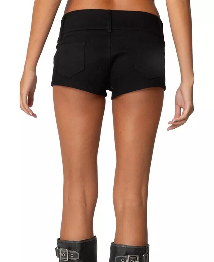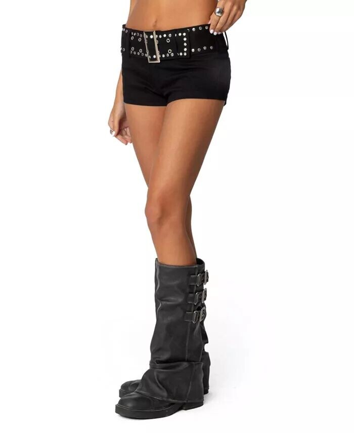 Женские джинсовые микро-шорты с заклепками на поясе Edikted, черный