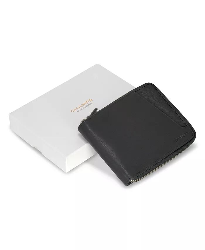 Мужской кожаный кошелек на молнии Iconic Collection CHAMPS, черный