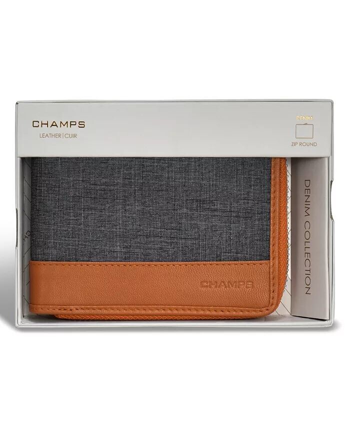 Мужской джинсовый кошелек из кожи на молнии CHAMPS, черный