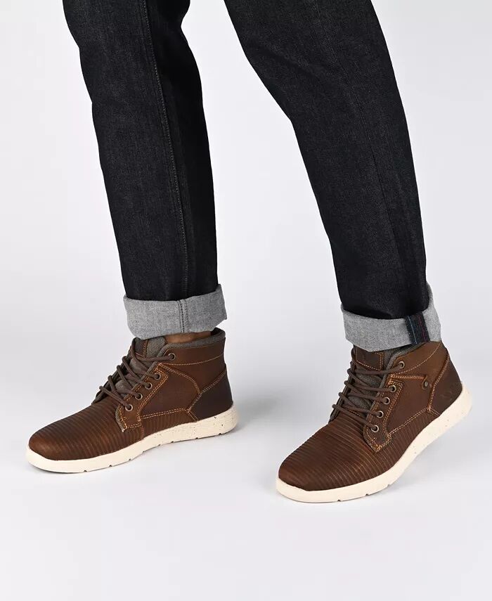 Эти кроссовки-ботинки на шнуровке с застежкой на пять люверсов легко сочетаются практически с чем угодно в вашем гардеробе. Magnus by Territory имеет тисненый верх, подчеркнутый язычком и манжетой из холста. С облегающим и поддерживающим высоким силуэтом вы не ошибетесь.