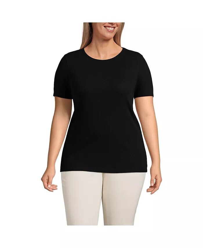 Футболка большого размера с микро-рубчиком Lands' End, черный