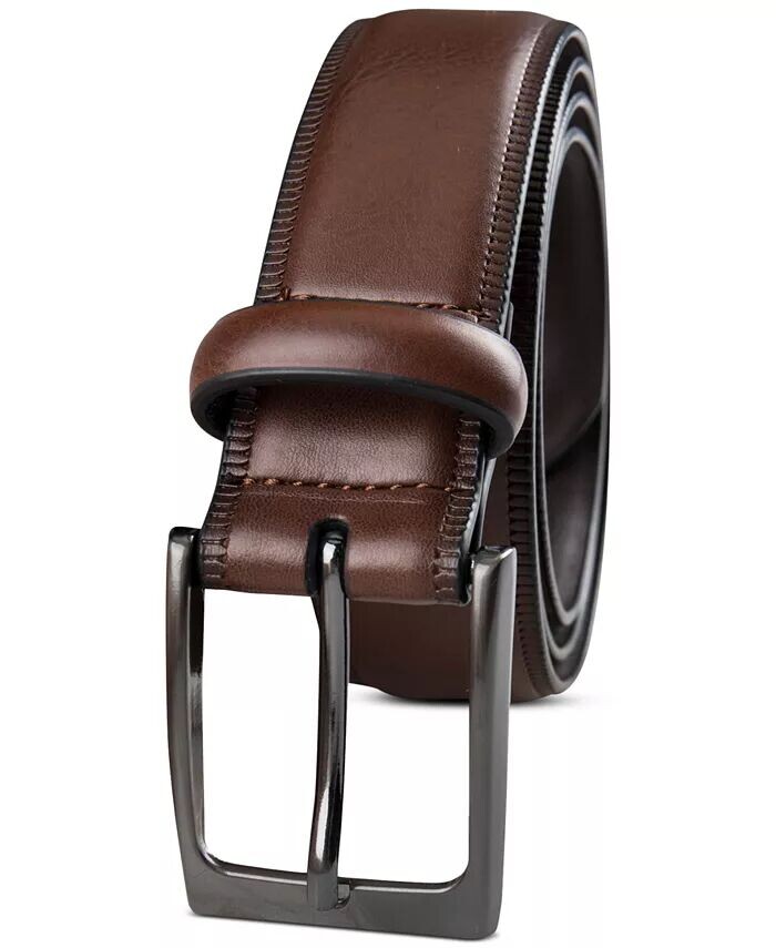 Приведите себя в порядок и соберите с этим классическим ремнем от Alfani. Этот ремень без излишеств, выполненный с приподнятым ремнем с перьевым краем и тонким тиснением по краям, является неотъемлемой частью гардероба.