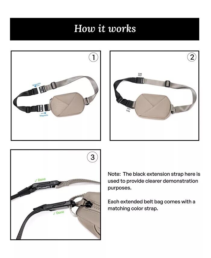 Можно носить как пояс или сумку-слинг в двух направлениях.