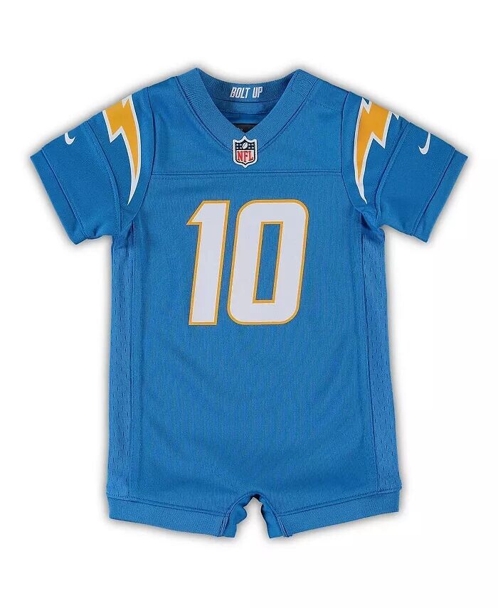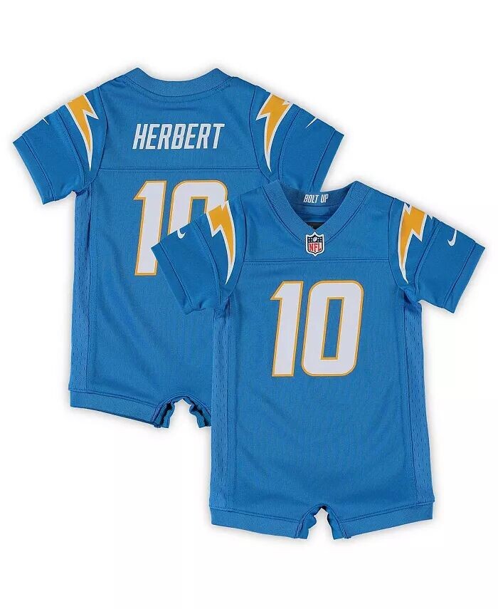 Убедитесь, что ваш маленький фанат Los Angeles Chargers выглядит как настоящий болельщик с этим ромпером Justin Herbert Game от Nike. Он имеет сетчатые боковые панели, которые гарантируют, что его владельцу будет комфортно все время, пока он его носит. Этот джерси также имеет аутентичную графику, идеально подходящую для демонстрации нового стиля Los Angeles Chargers.