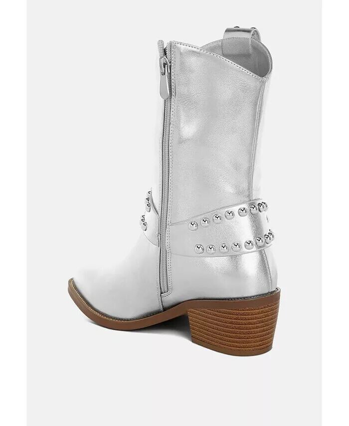 Абсолютно потрясающие и универсальные, эти сапоги длиной до щиколотки украшены ослепительными заклепками для шикарного вида. Они предлагают удобную и непринужденную посадку с деталями в виде ремней и удобными язычками для легкого надевания и снимания.