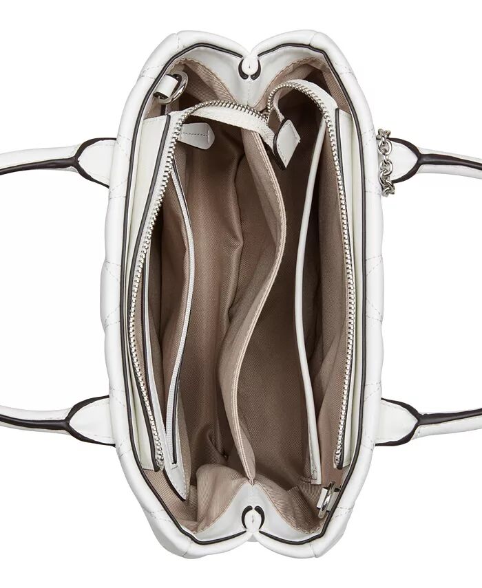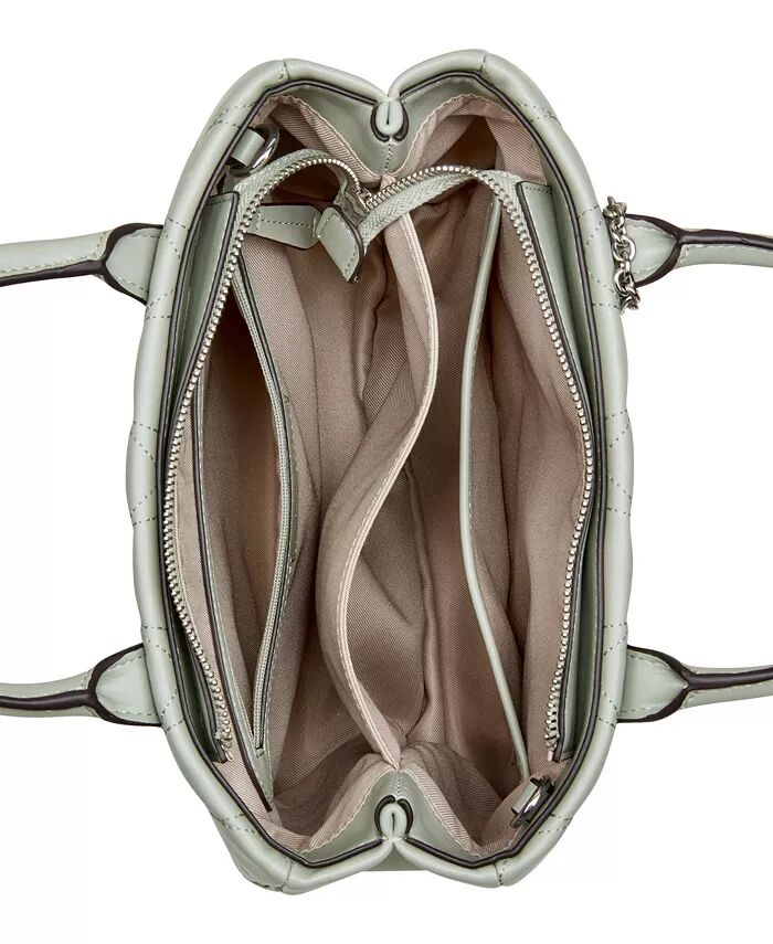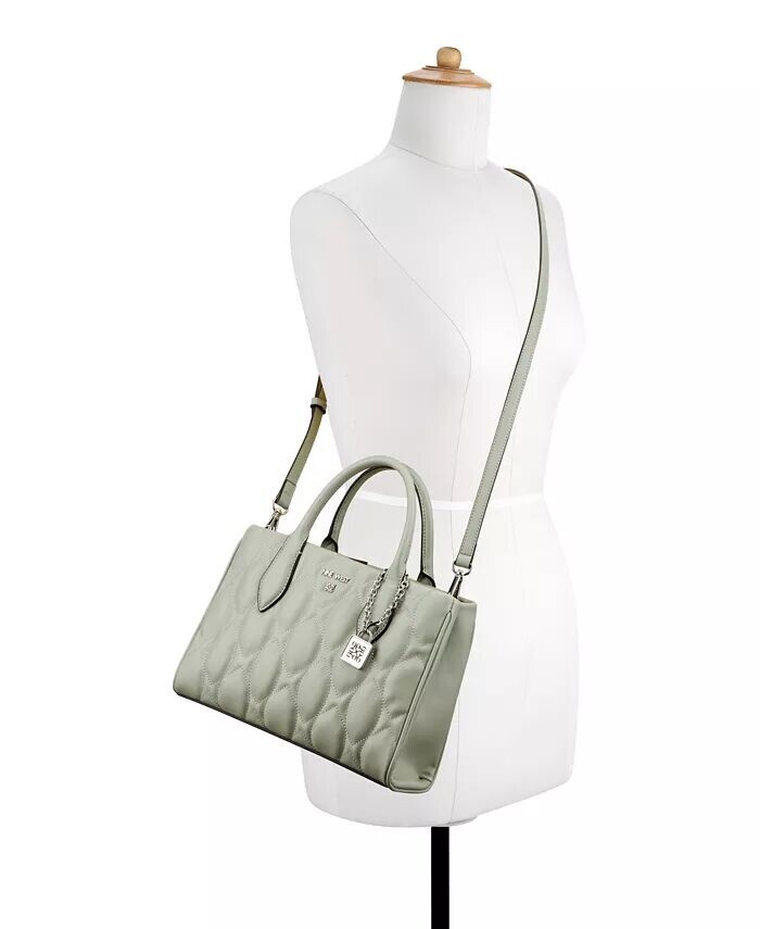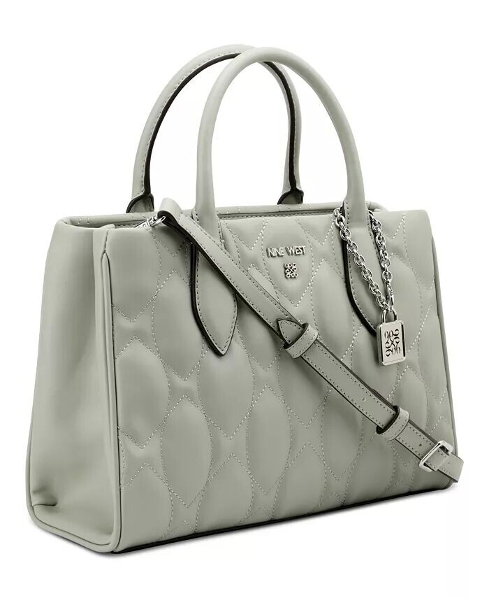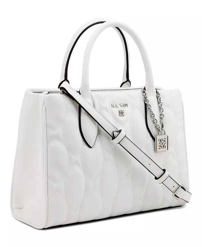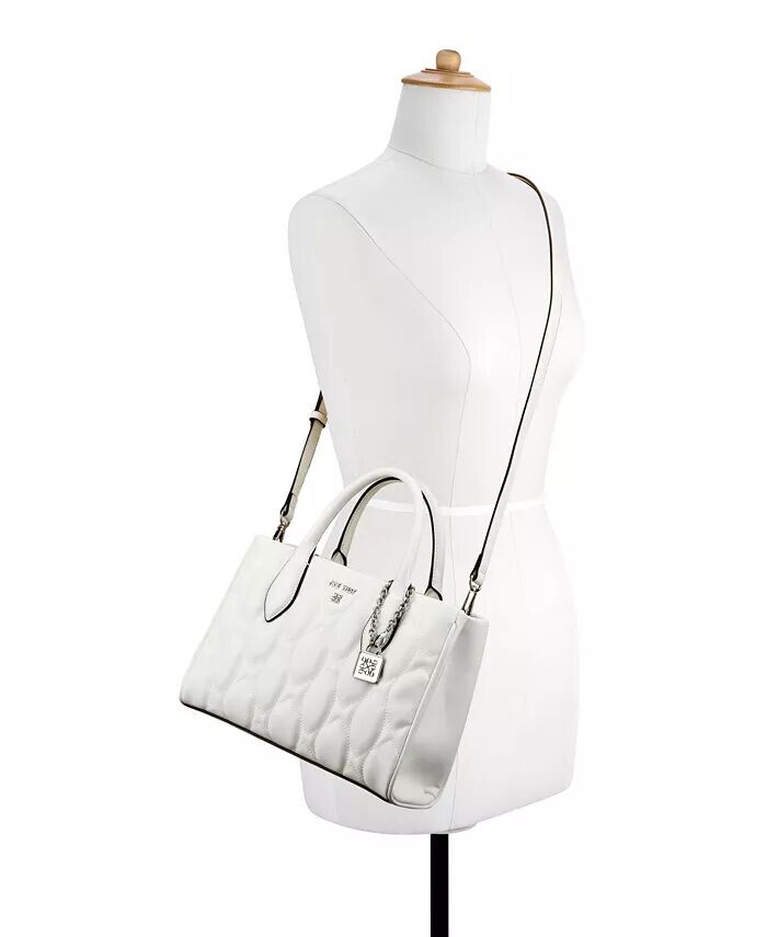 Дизайнер Nine West Rue Satchel, выполненная из мягкого стеганого материала с деталями строчки и фурнитуры. Внутренний накладной карман для организации и потрясающая съемная цепочка-ловушка для повседневного ношения или идеального использования в качестве сумки для особого случая. Носите сумку-сэтчел или свободными руками как кроссбоди со съемным ремешком.