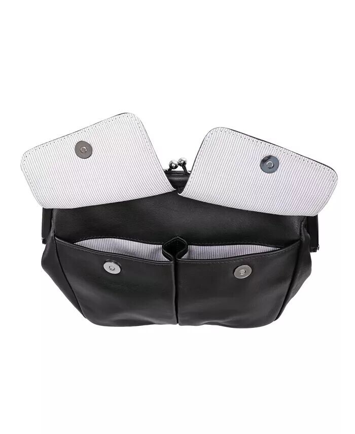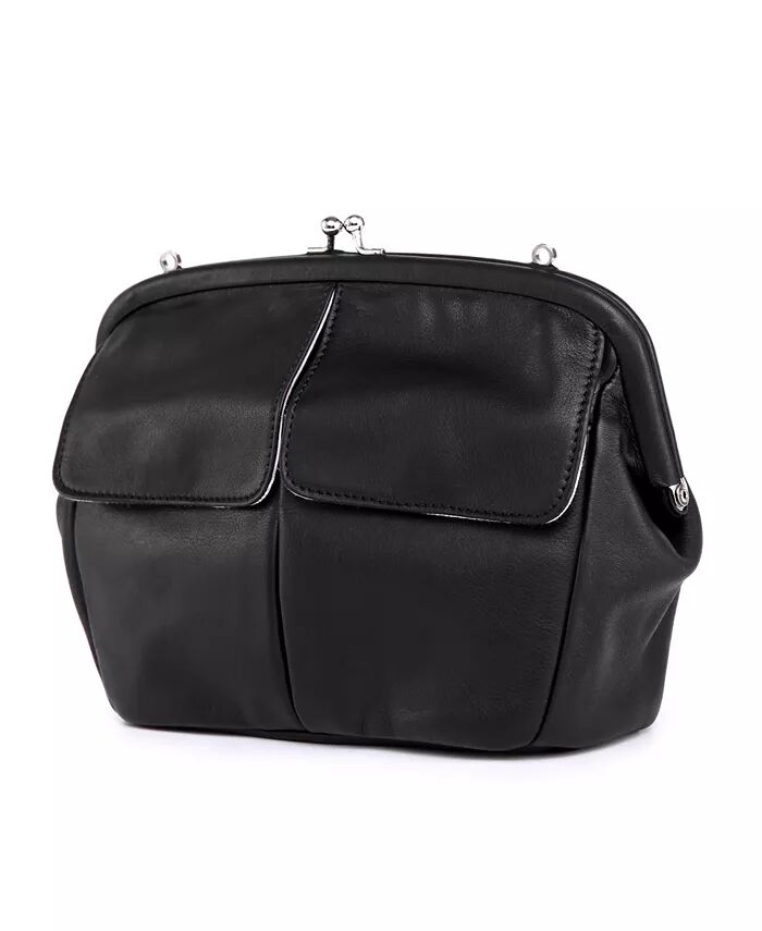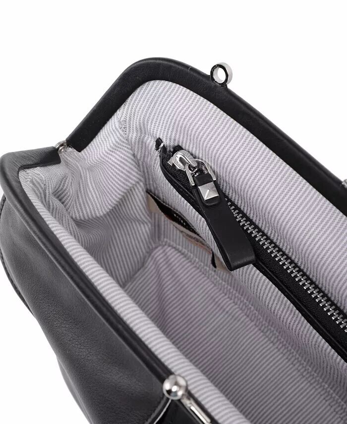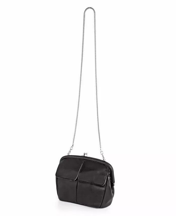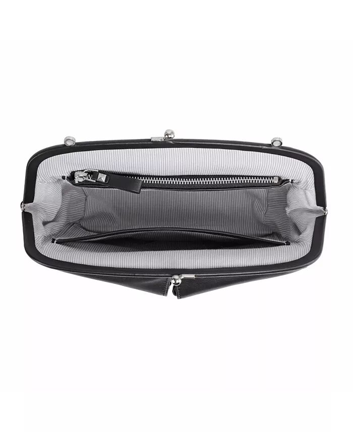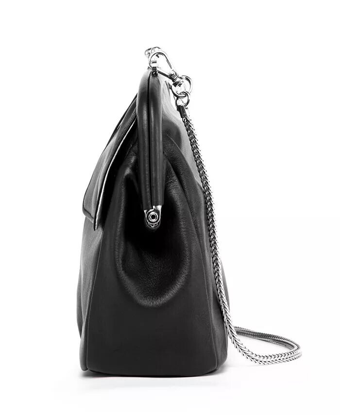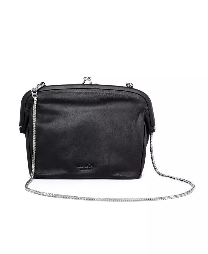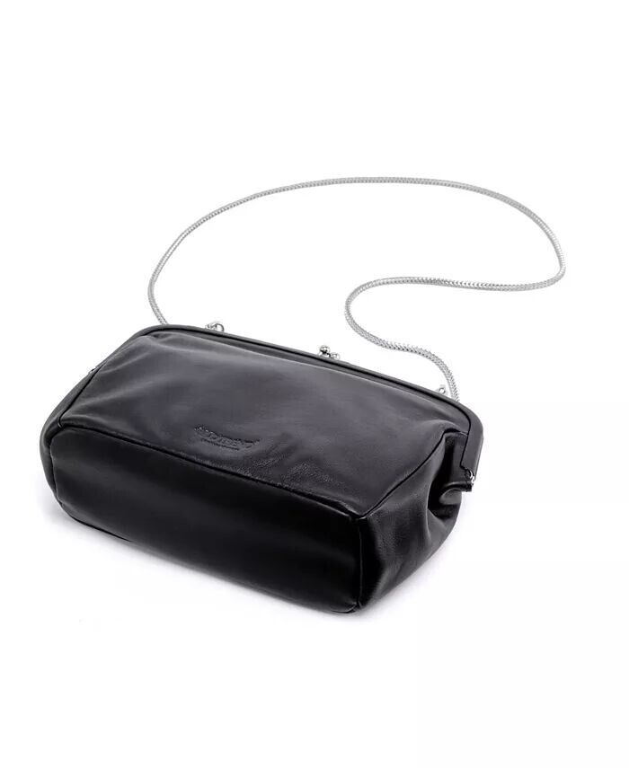 Стильно спроектированная с серебристой фурнитурой и цепочным ремешком без использования рук, наша сумка Pec Shell Crossbody - это современная интерпретация классического традиционного стиля kiss-lock. Изготовленная вручную из натуральной кожи, она является модным способом отслеживать ваши потребности на улице.