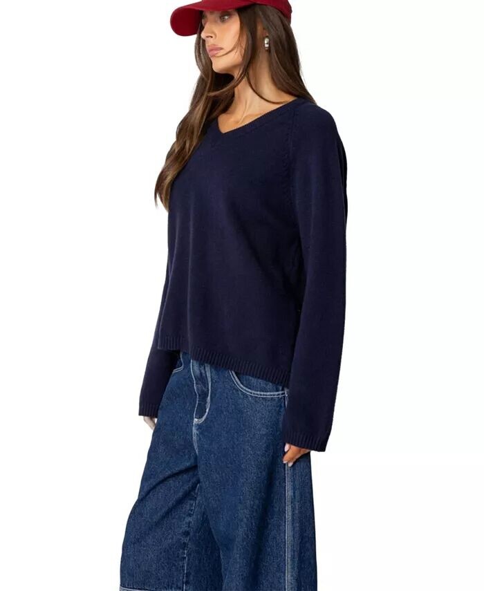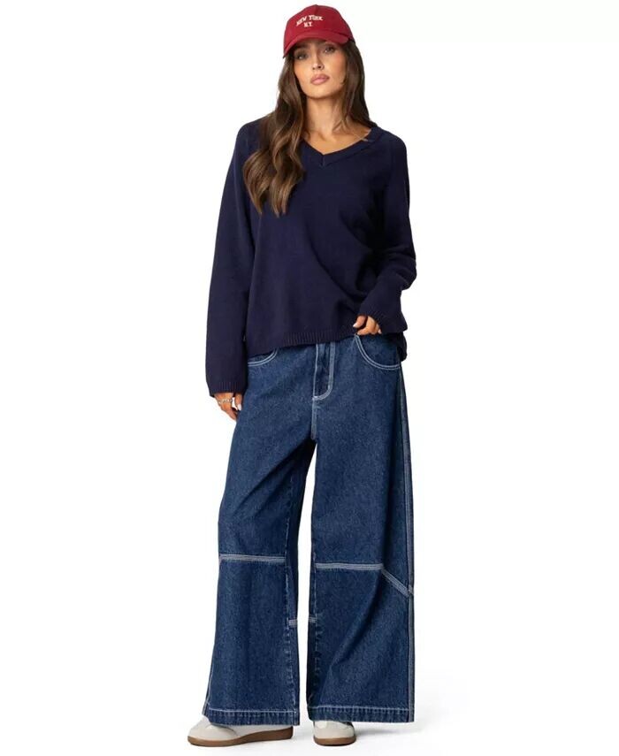 Женский свитер Martha oversize с V-образным вырезом Edikted, синий