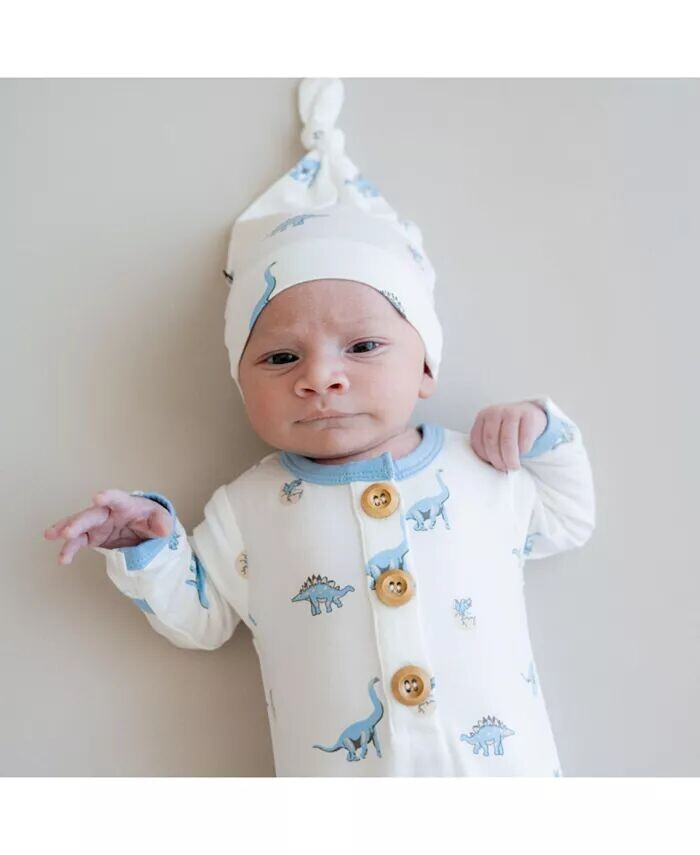 Это платье с узелками сделано из мягкой бамбуковой вискозы, которая нежна для нежной кожи вашего новорожденного и идеально тянется для движения бедер. Завязка снизу делает смену подгузников легкой, а деревянные пуговицы спереди добавляют очаровательного очарования. Соответствующая шапочка с узелками - последний штрих к идеальному образу, чтобы объявить о появлении вашего малыша.