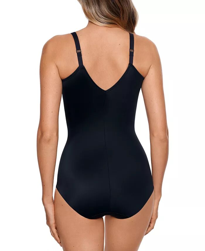 Этот экстра-жесткий боди Miraclesuit имеет печатную жидкую LYCRA, которая уплощает живот с помощью целенаправленного контроля. Он оснащен бюстгальтером без косточек, который поднимает и формирует вместе с регулируемыми бретелями. Wonderful Edge сзади на проймах для ног обеспечивает посадку без скольжения, не показывая.