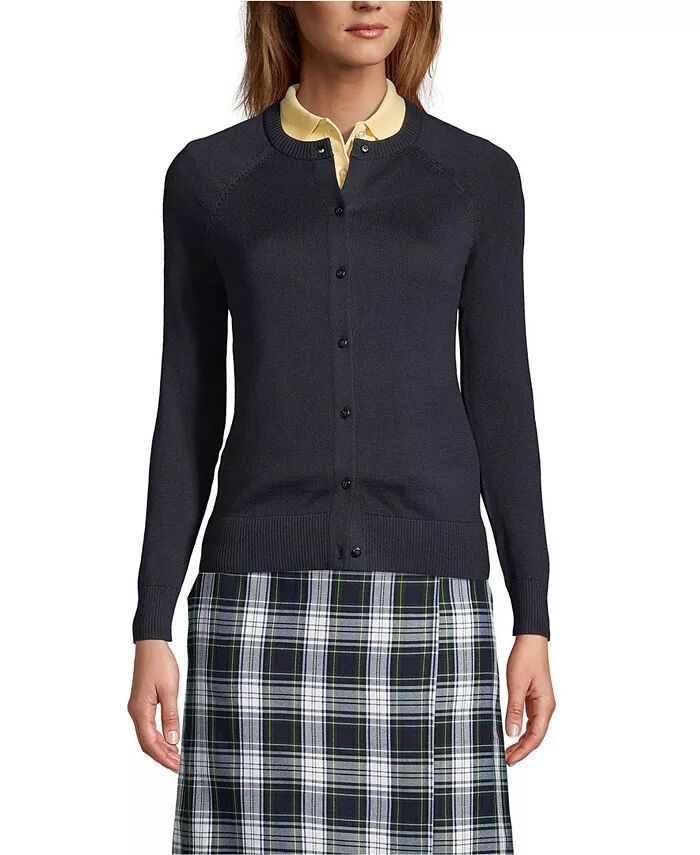 Школьная форма женский хлопковый модальный кардиган свитер Lands' End, черный
