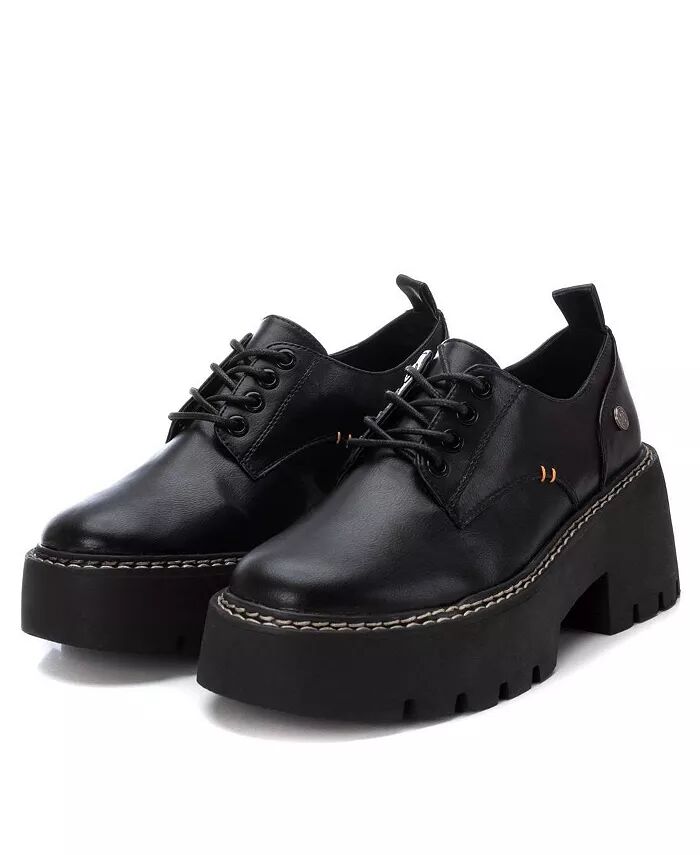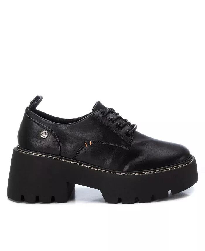 Женские мокасины на каблуке и шнуровке XTI, черный
