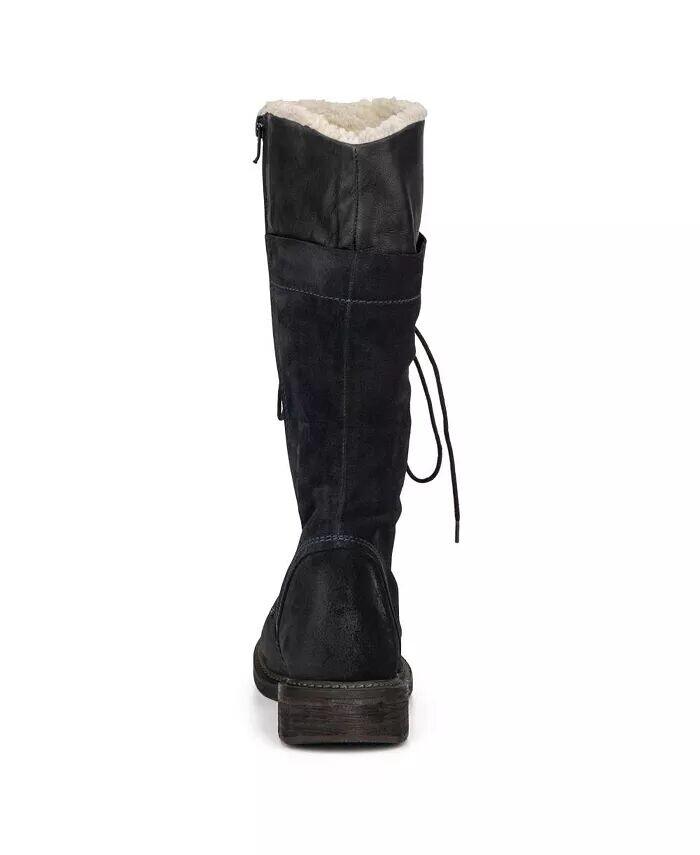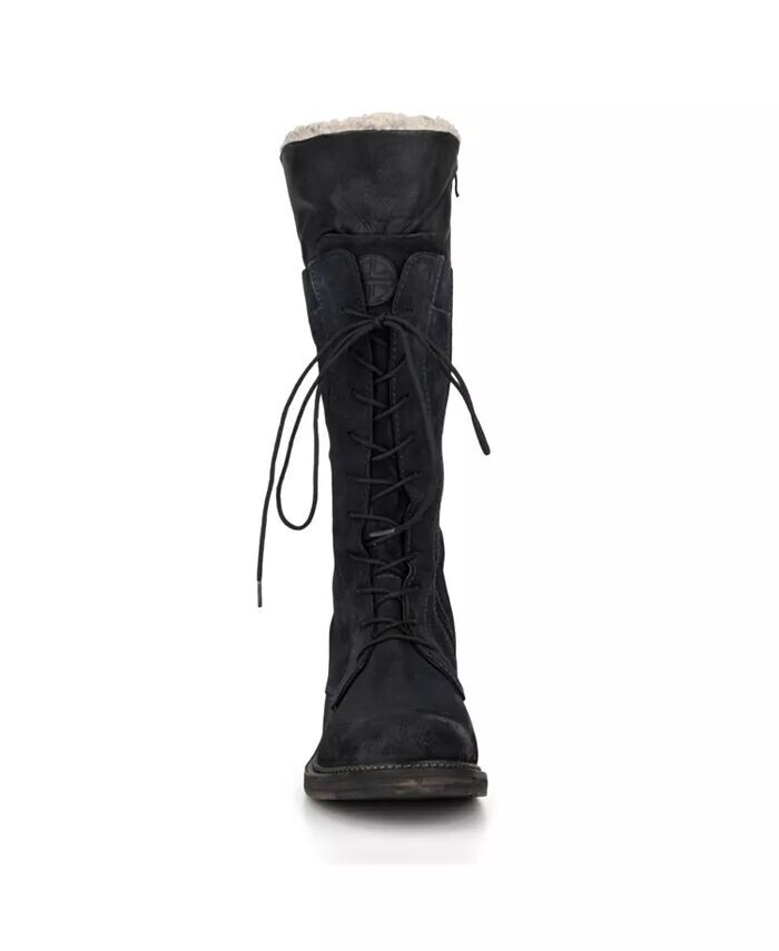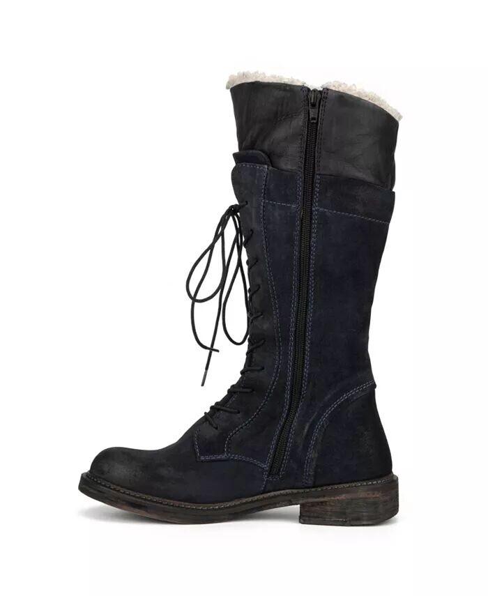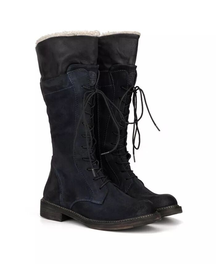 Мягкий замшевый верх доходит до середины икры и может похвастаться шнуровкой сверху донизу для надежной посадки. Фирменная отделка на мыске и удобная внутренняя подкладка из шерпы с возможностью подворачивания. Круглый носок и короткий наборный каблук.