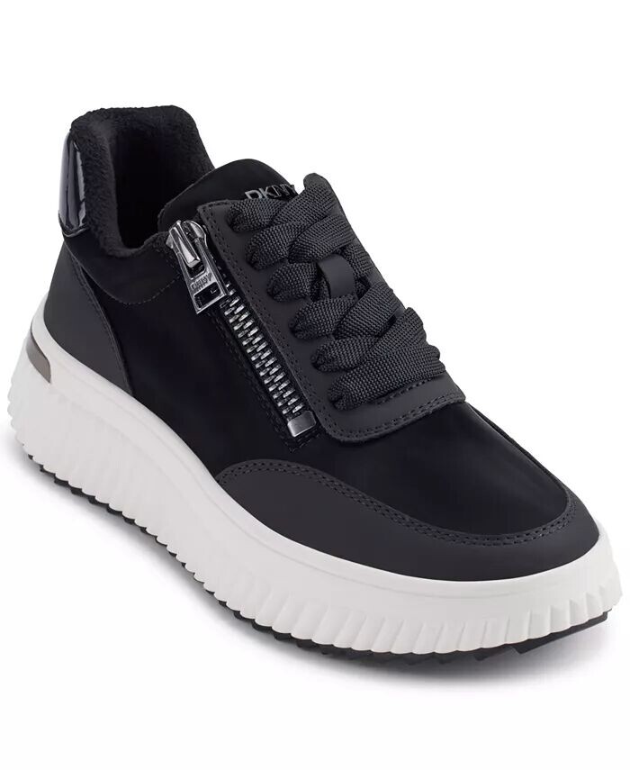 Металлические детали логотипа DKNY Women подчеркивают танкетку этих спортивных, но, несомненно, шикарных кроссовок на шнуровке с боковой молнией.