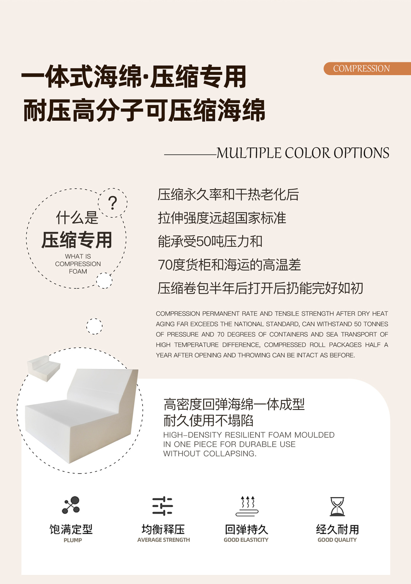 - Высокая плотность губки + процесс вертикального сжатия обеспечивают сохранение формы при хранении и транспортировке.