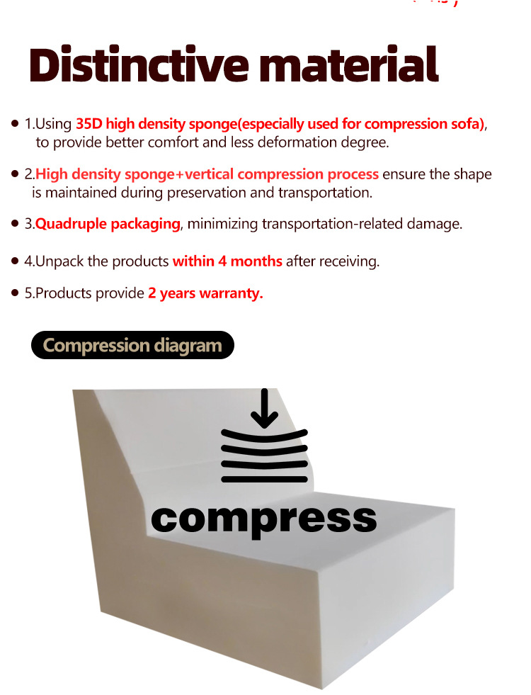 - Использование губки высокой плотности 35D (специально используется для компрессионной мебели), чтобы обеспечить больший комфорт и меньшую степень деформации.