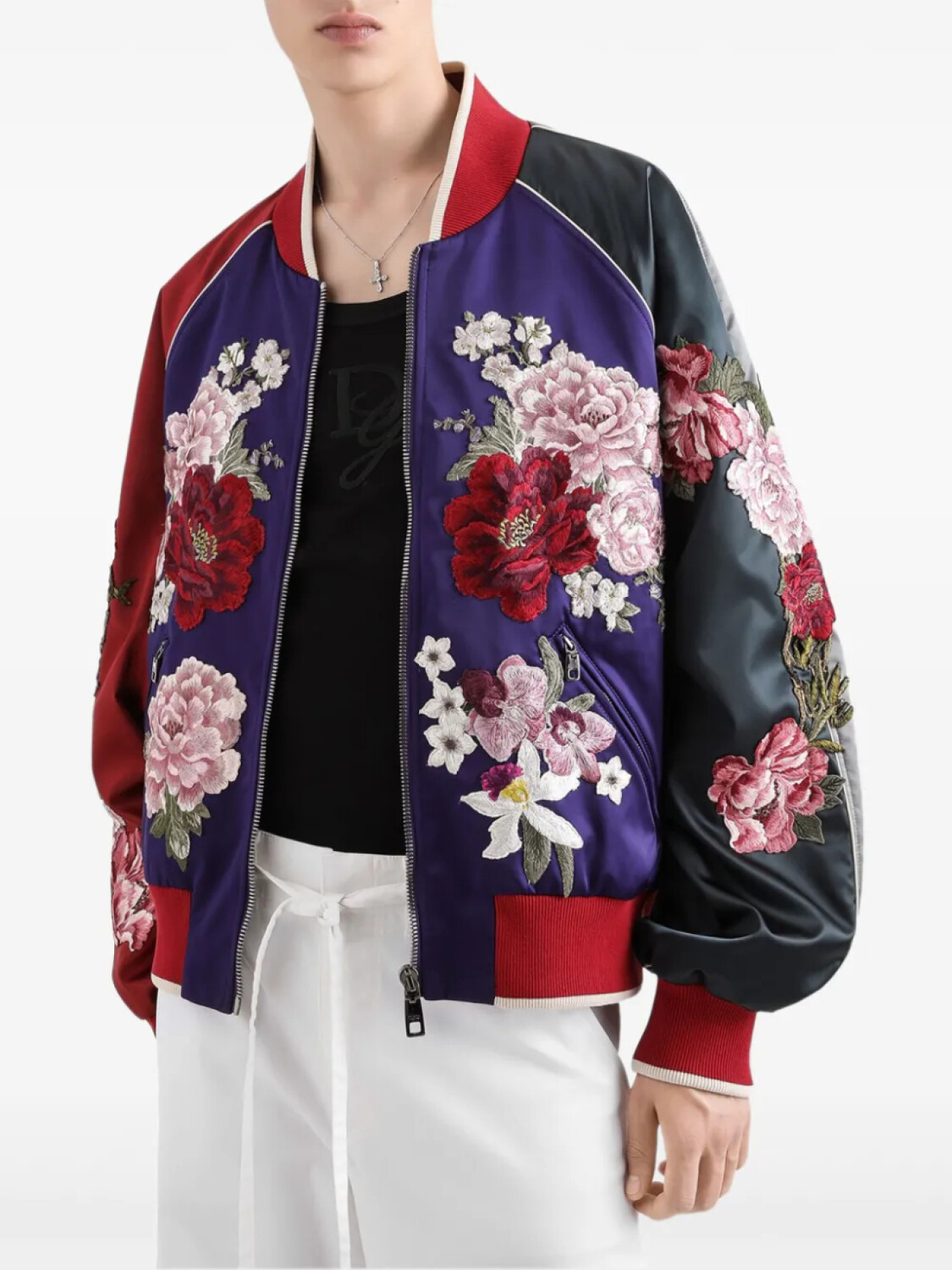 Dolce & Gabbana бомбер с цветочным принтом, фиолетовый