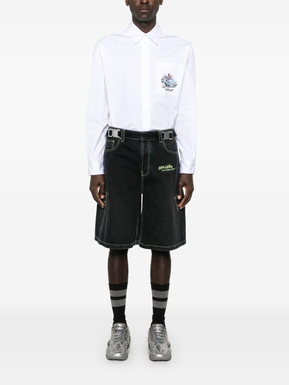 Off-White джинсовые шорты с вышитым логотипом, черный