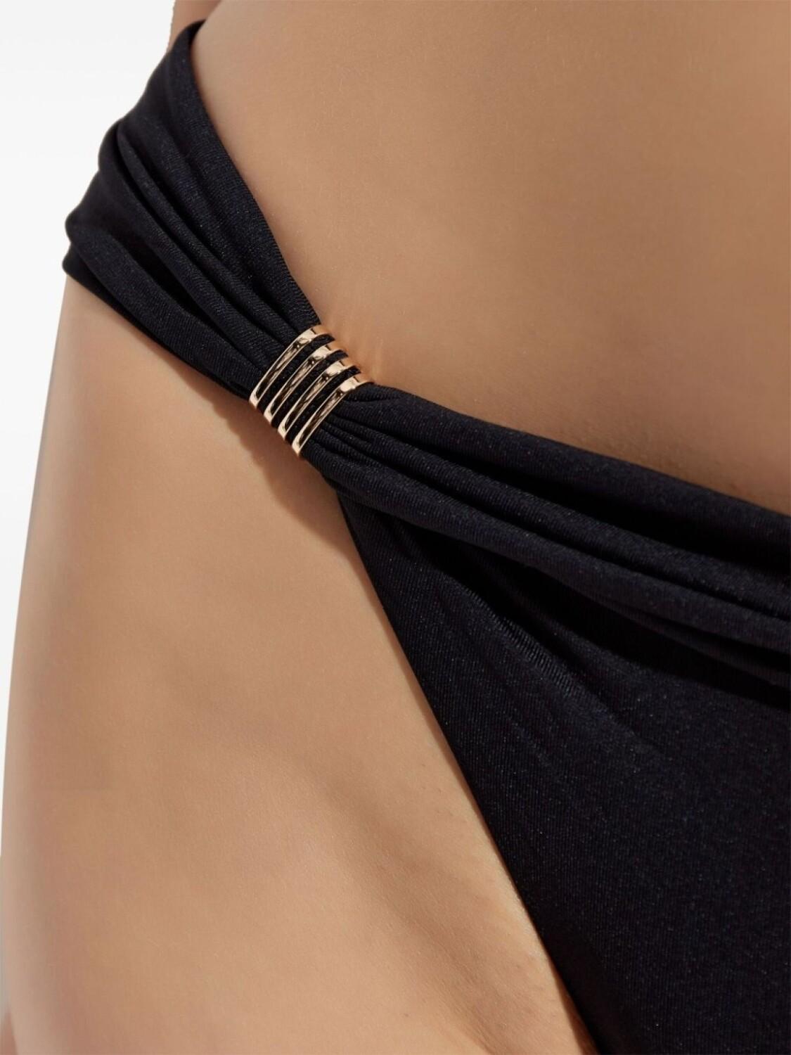 Черные классические плавки с украшением в виде кольца. Будьте внимательны, примеряя купальники поверх своей одежды.