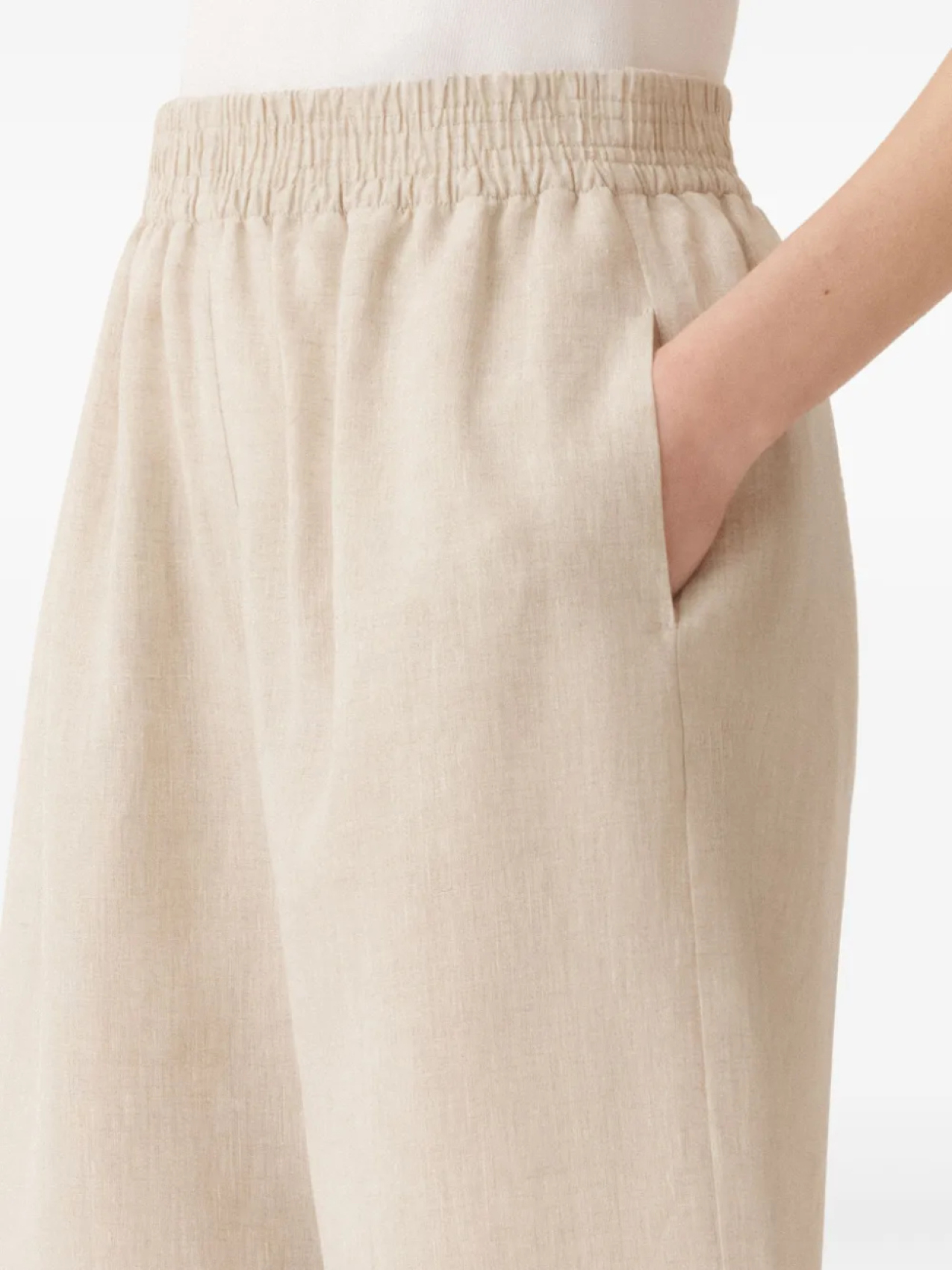 Светло-бежевый эластичный пояс, накладные карманы по бокам, два прорезных кармана сзади