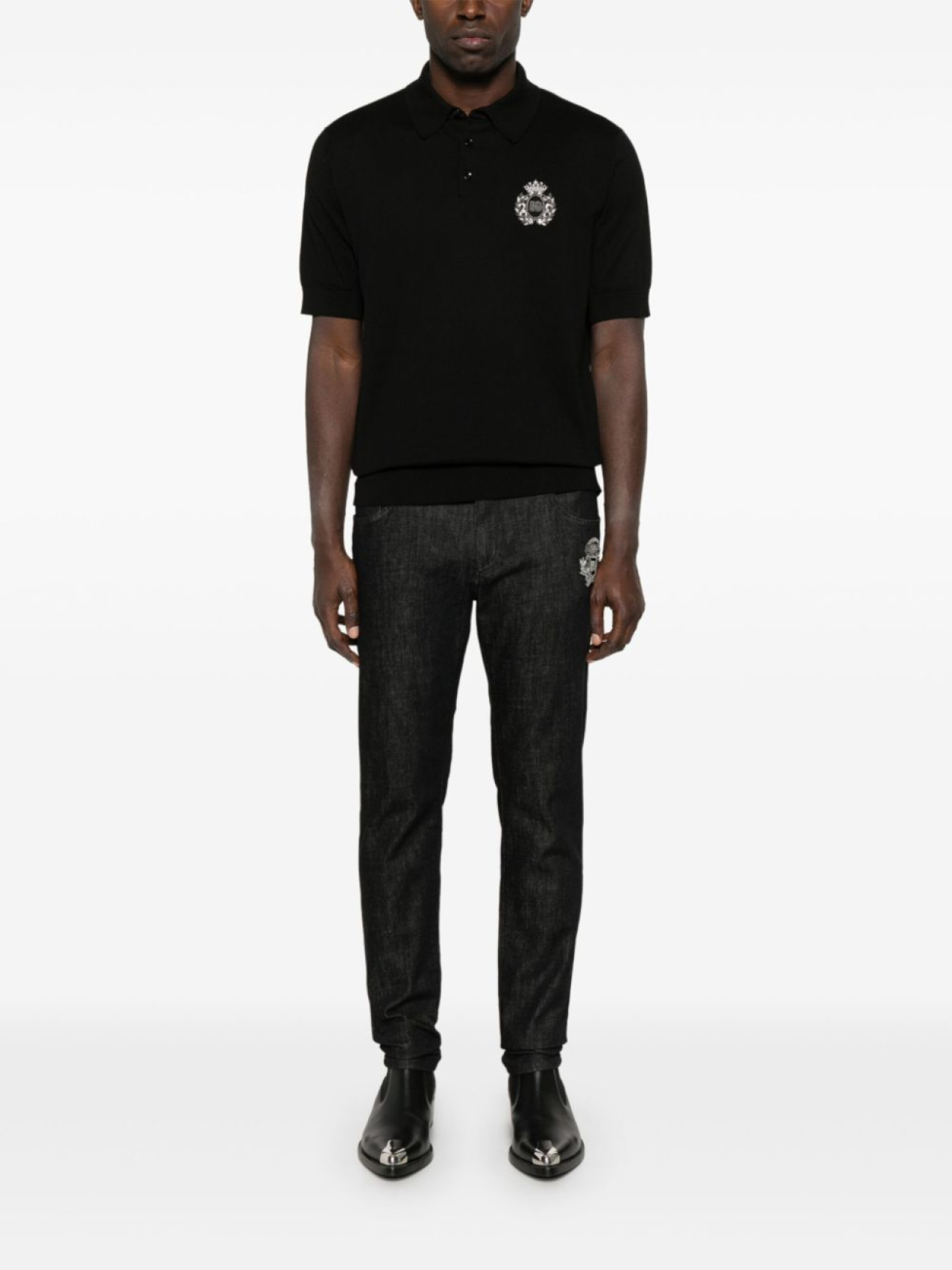 Dolce & Gabbana рубашка поло с вышитым логотипом, черный